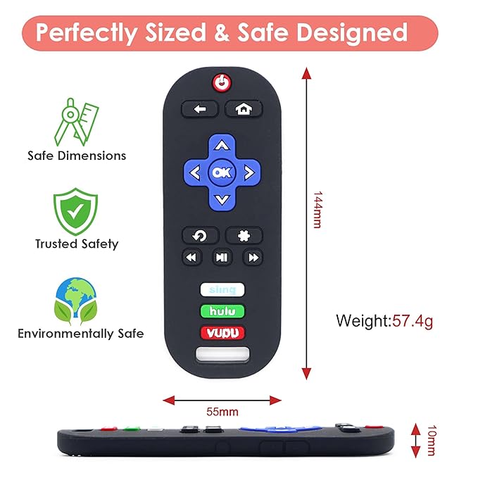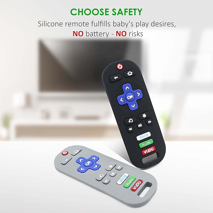 Silicone Baby Teething Toys, TV Remote Control Shape Silicone Teethers, BPA Free, Sustainable, Washable, and Non Toxic (Gray)