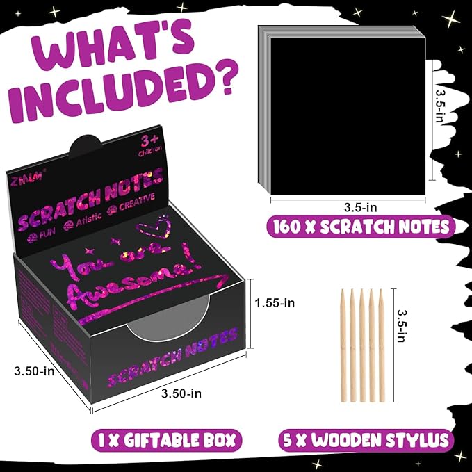 • Rose Red Holographic Scratch Art Mini Notes: Our scratch art paper with 160 sheets of holographic scratch paper note cards (Size: 3.5*3.5inch /8.5*8.5cm) and 5 Styluses(3.5inch/8.5cm). Super Bulk kids art craft kits for fun way to doodle, leave notes, write Lists and and create cool illustrations and designs. Both kids and adults love exercising their imaginations with this bulk art craft Christmas gift