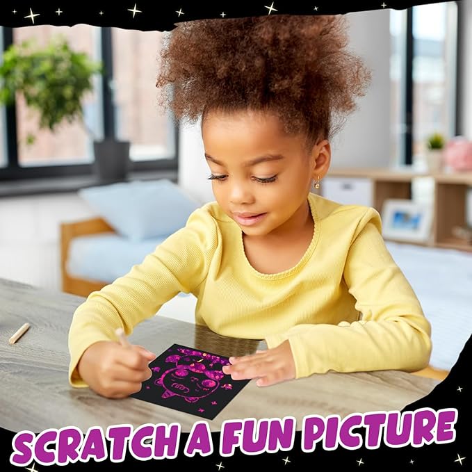• Anywhere You Can Use: Our kids crafts for classroom could be scratch note pads and adult doodle pad to write thank you cards, jot down notes, etch doodles, create cool illustrations and designs, surprise people, label things, make lists and add fun notes in the kids lunch box and backpack. Give a chance to think outside the box and unleash kids creative spirit by the bulk art supplies gifts
