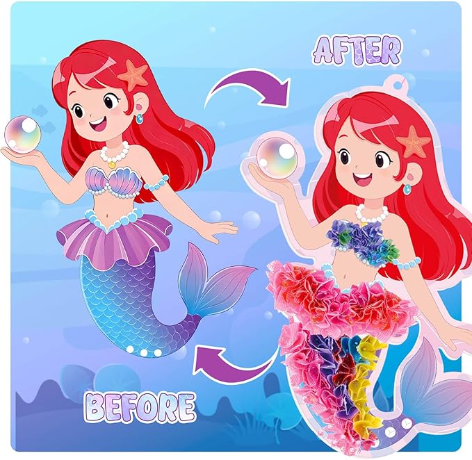 • Easy 3-Step Crafting: Place foam on pad → Insert fabric to decorate mermaids/sealife → Tie chains & hang. Turns flat shapes into 3D decor- doable alone!