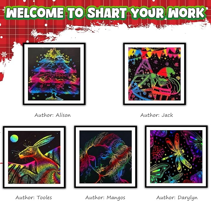 • Scratch Art For Kids: Our magic scratch paper made of premium paper & nature wooden stylus is safe scratch party favors art. Kids can draw amazing creative scratch note art sheet artworks safely. Great arts crafts supplies for kids teens adults. Classroom must haves art supplies for students from teacher